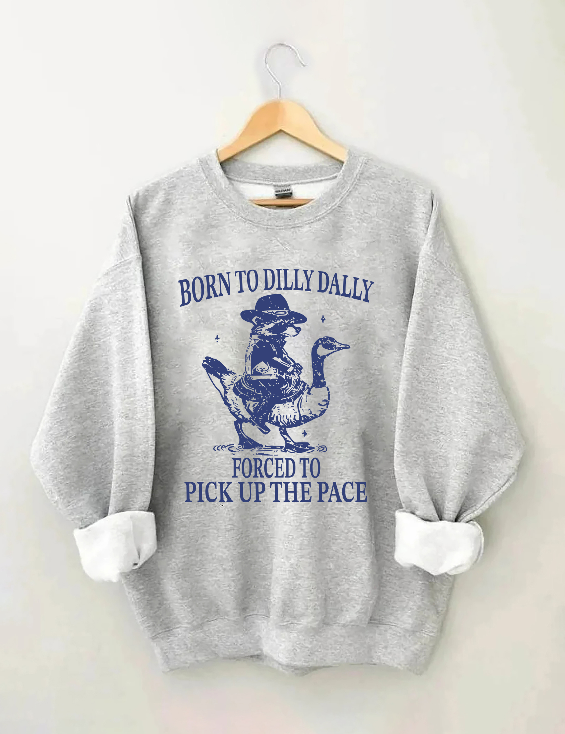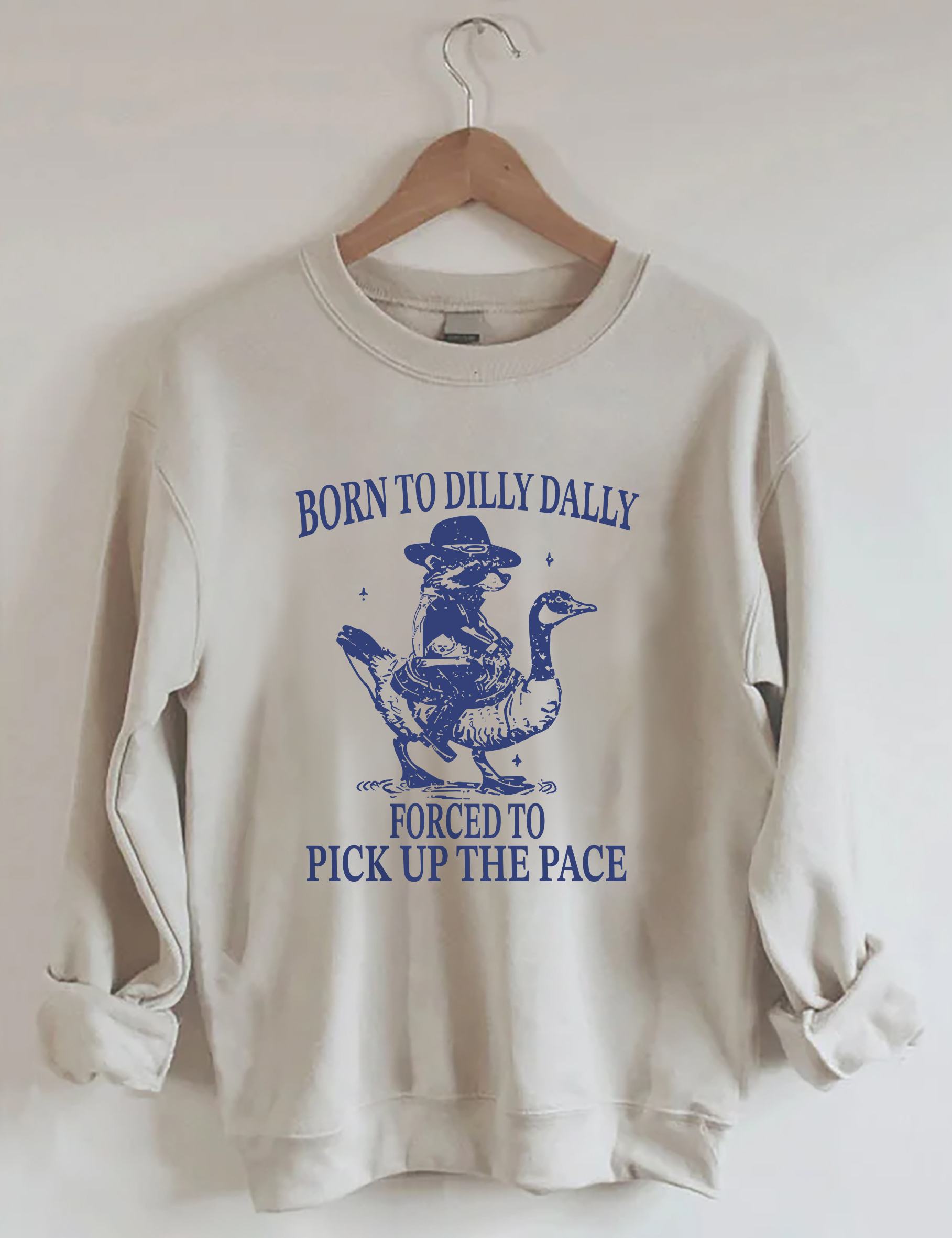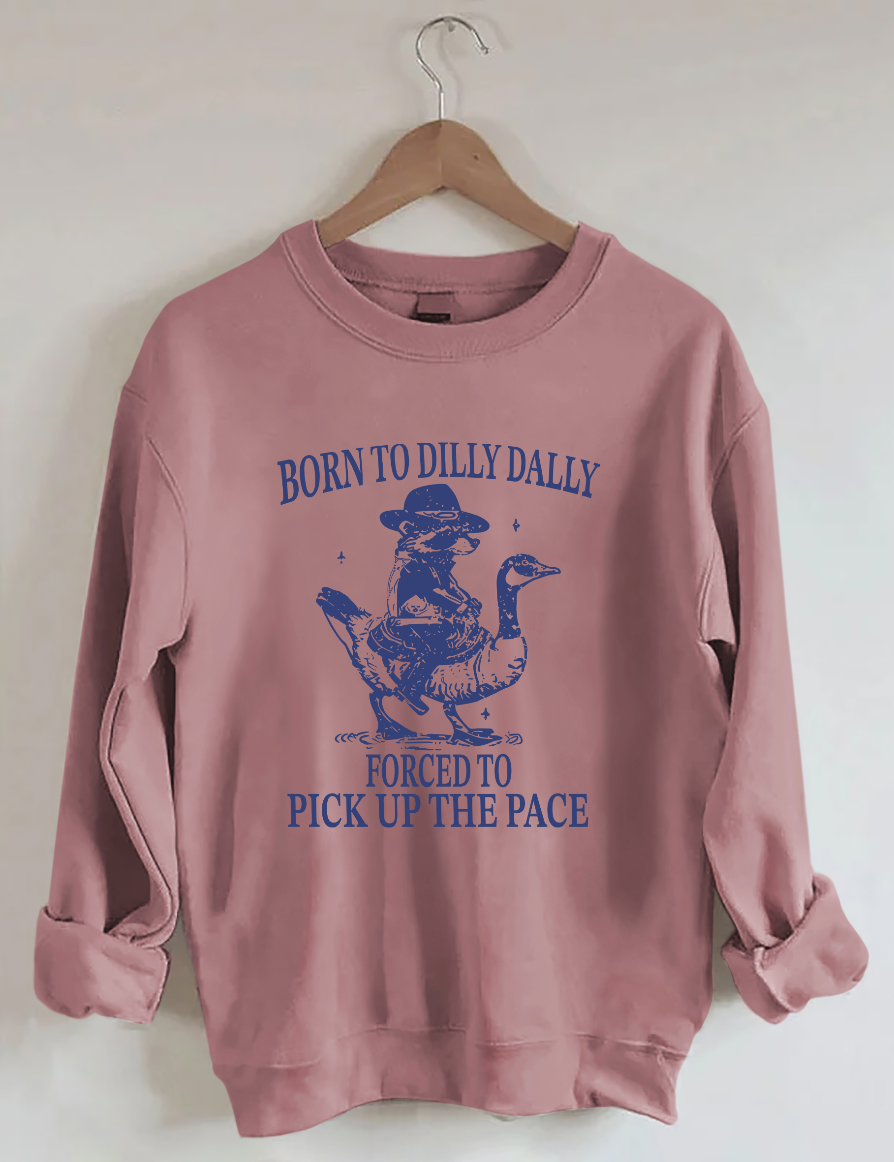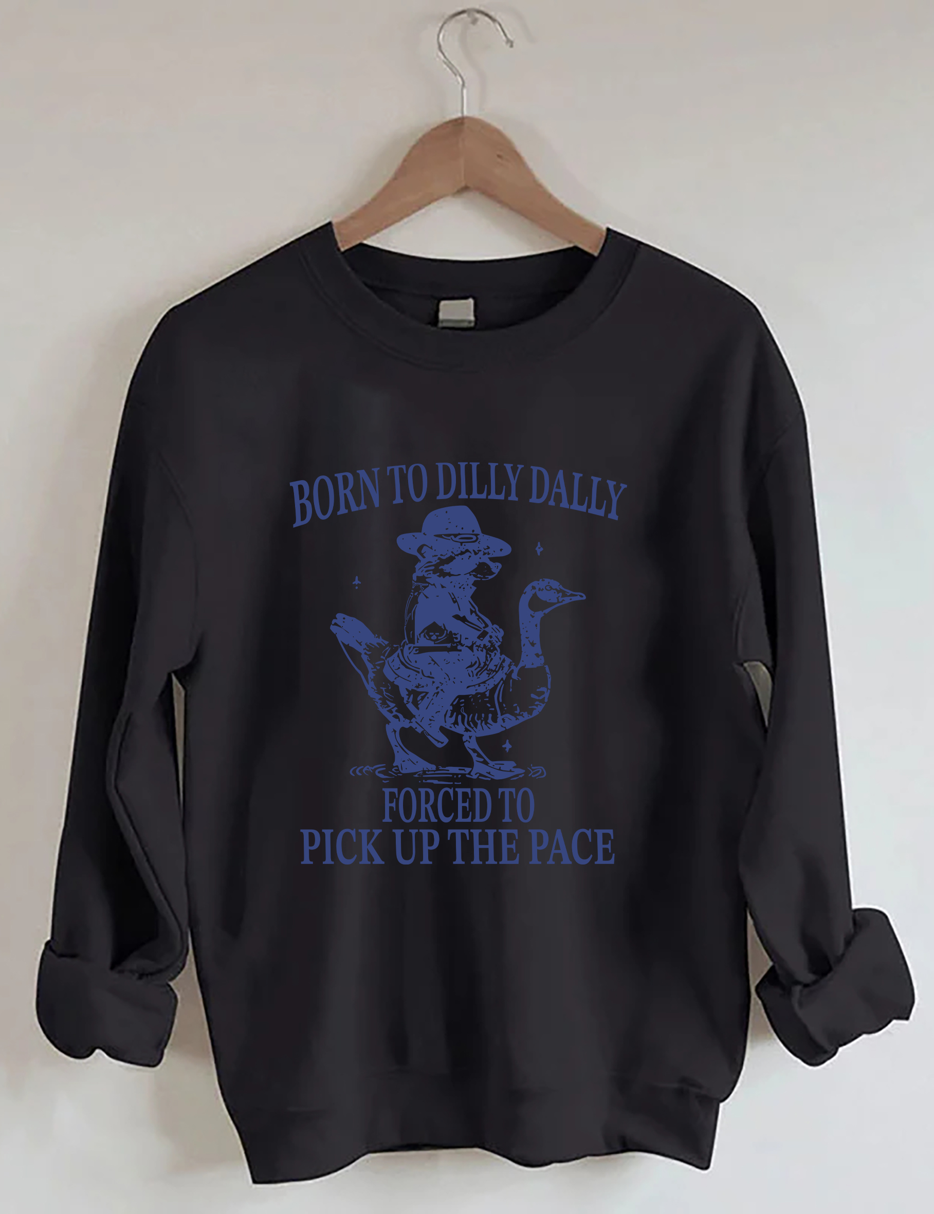 Born To Dilly Dally Forced To Pick Up The Pace Goose Raccoon Sweatshirt