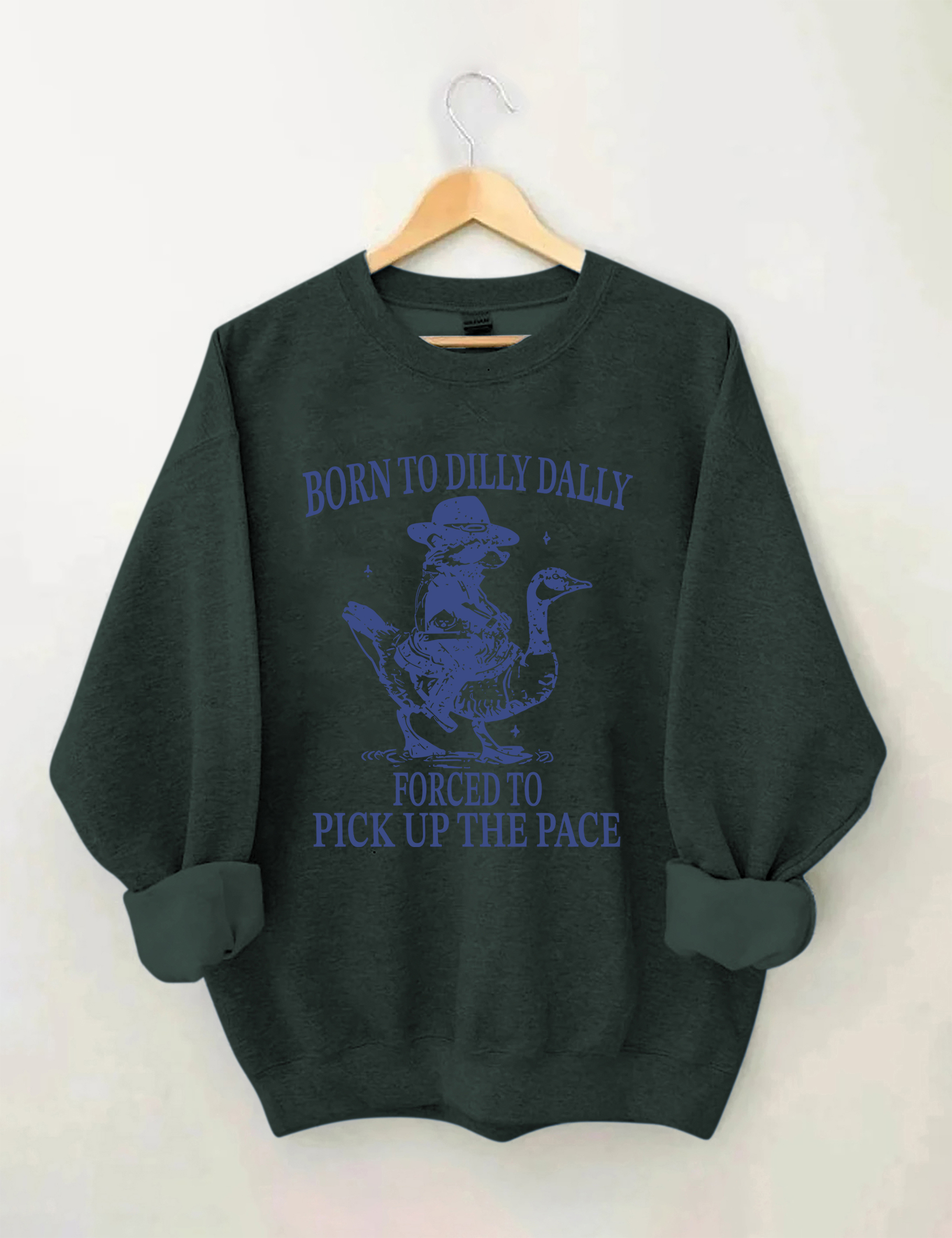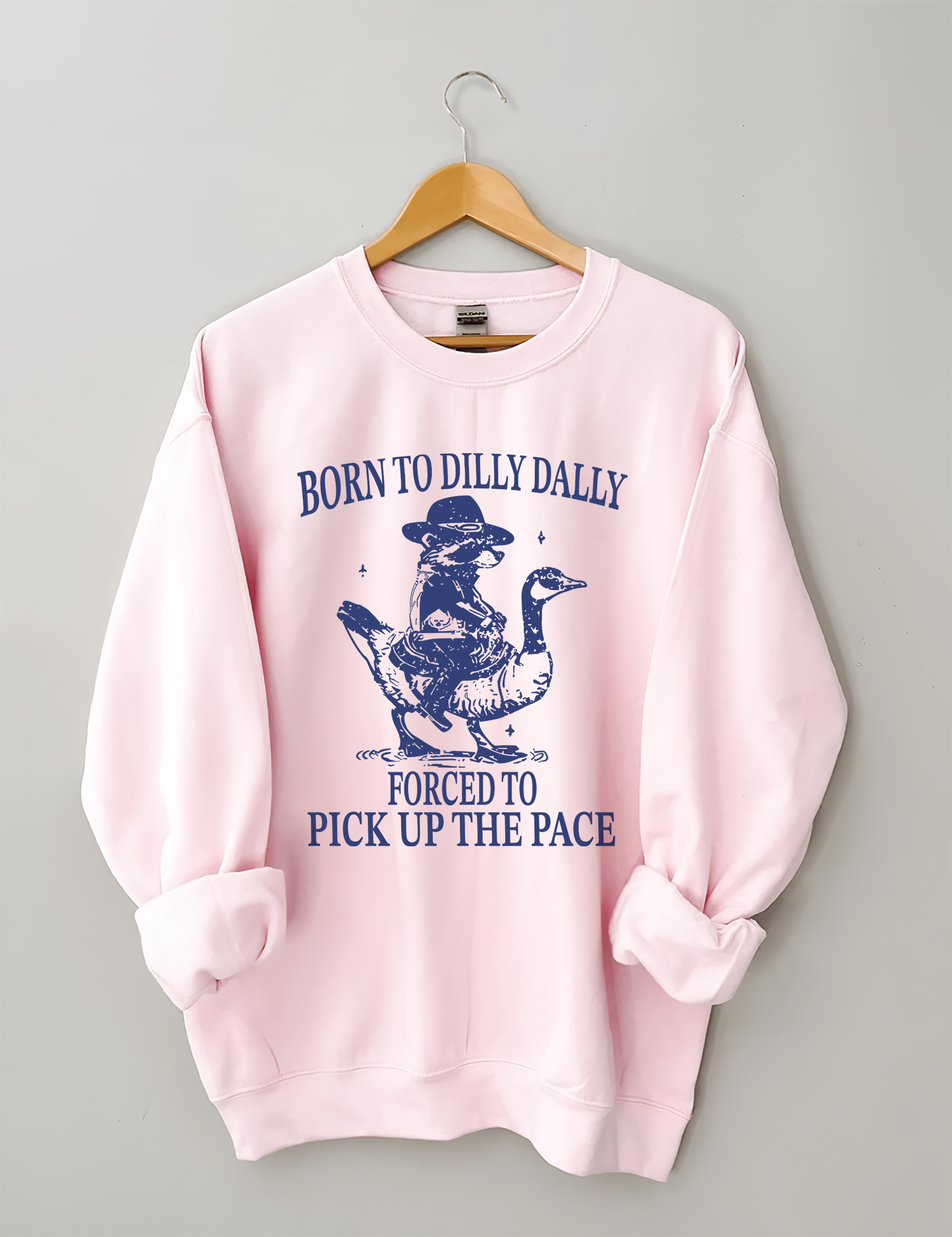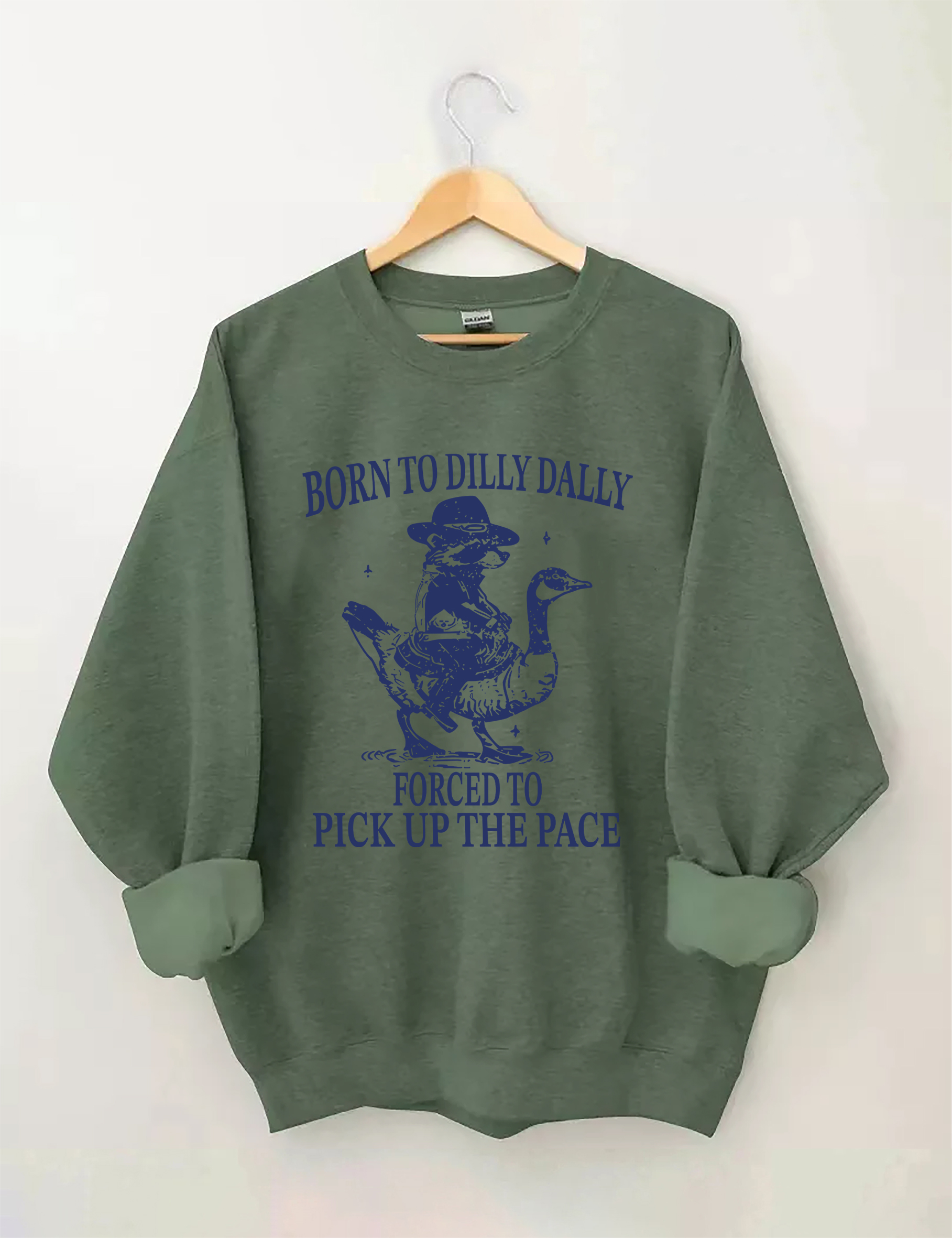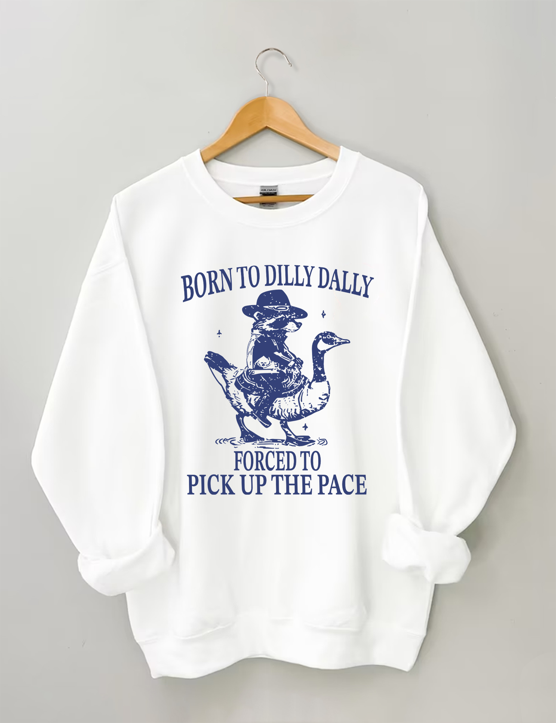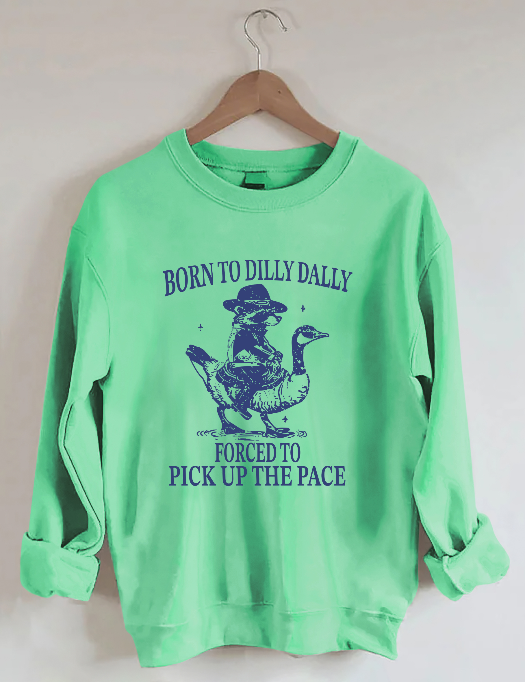 Born To Dilly Dally Forced To Pick Up The Pace Goose Raccoon Sweatshirt