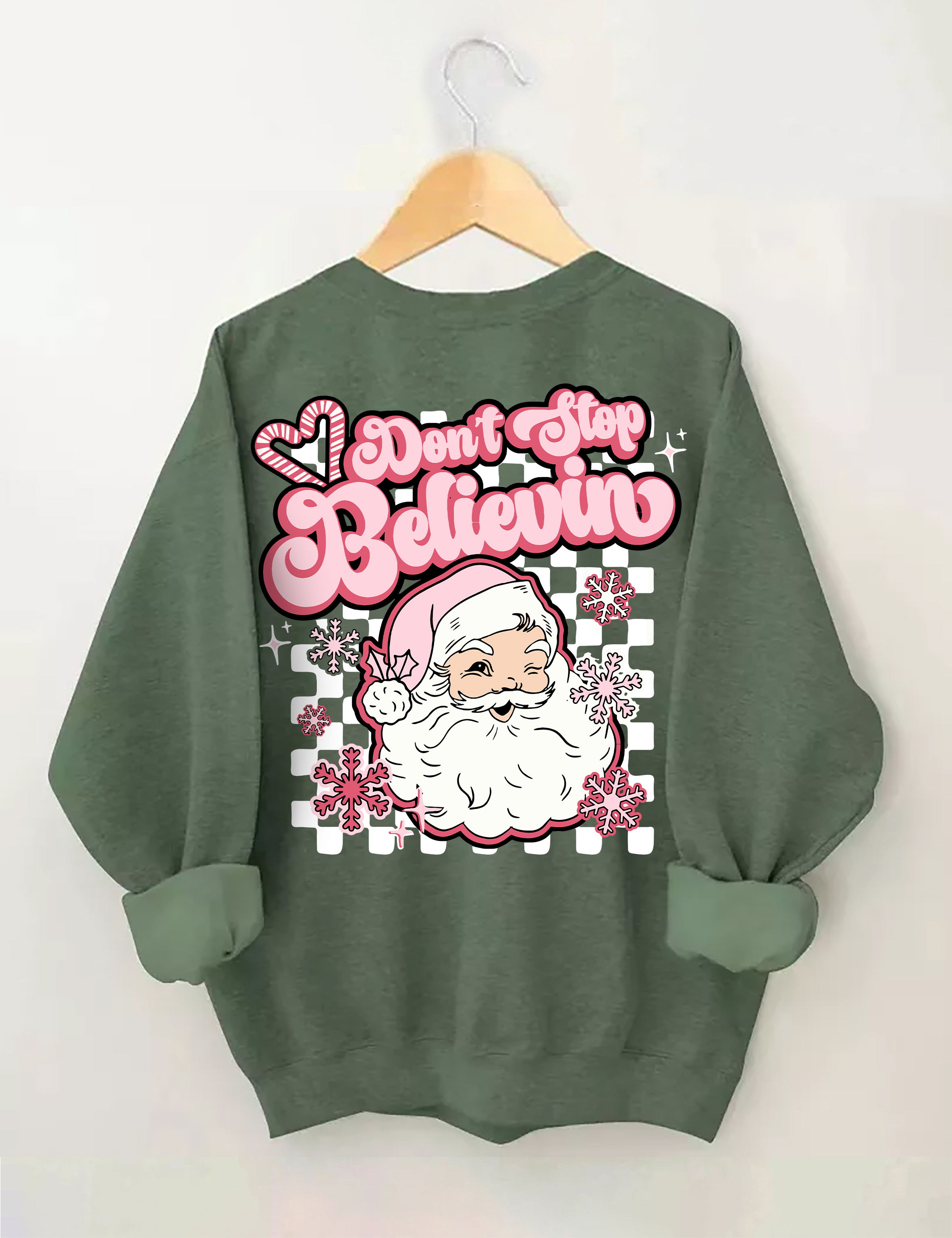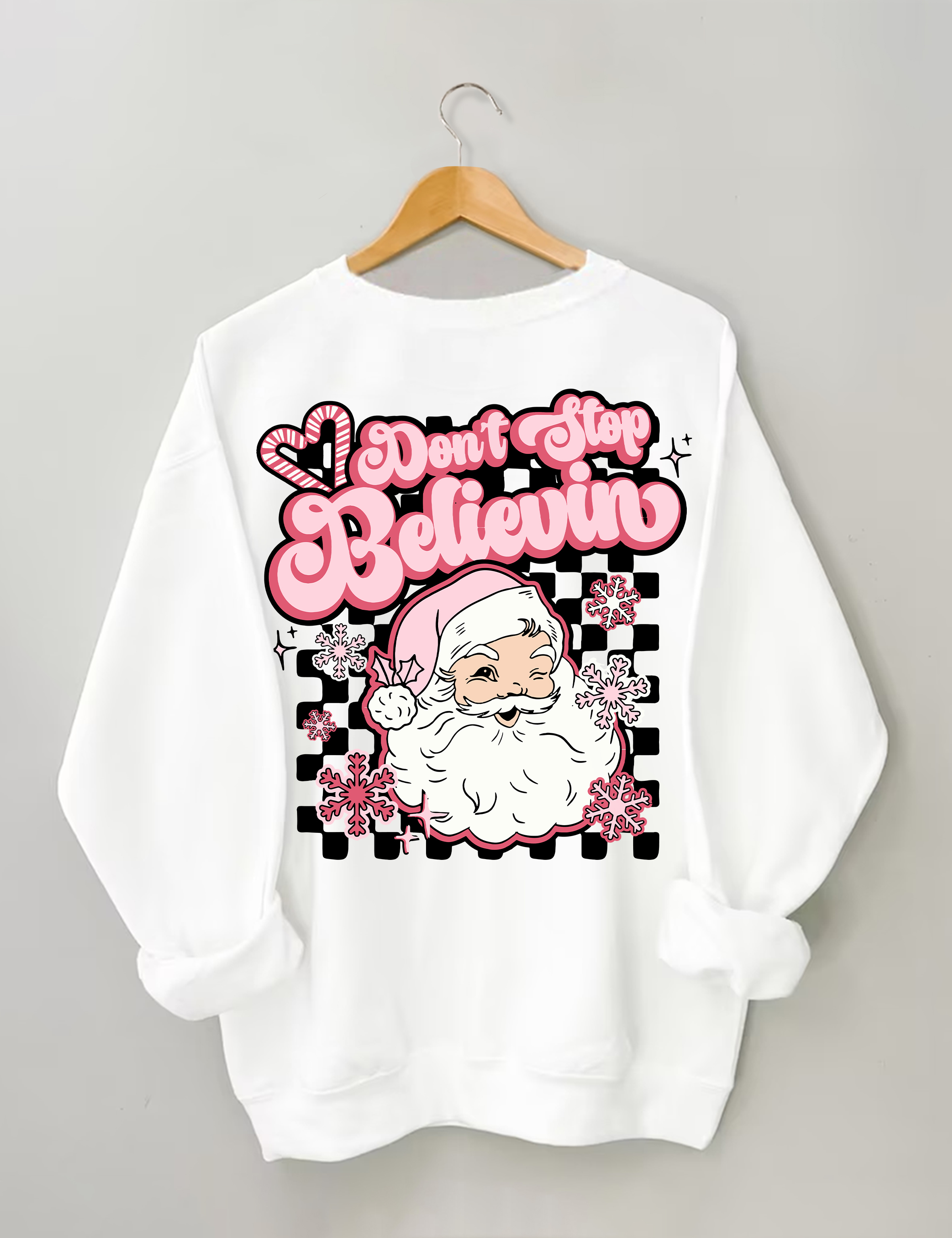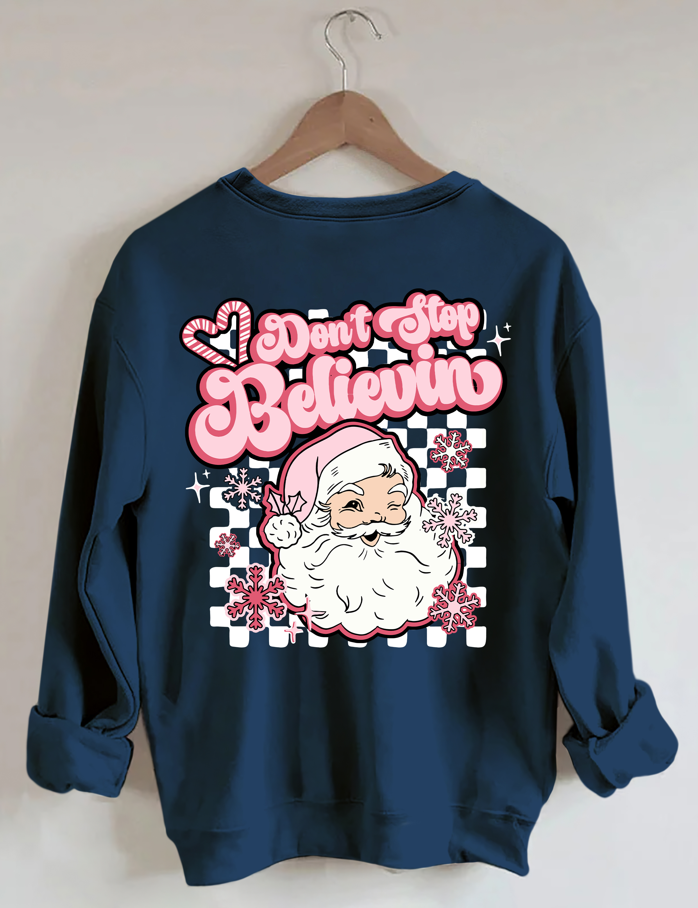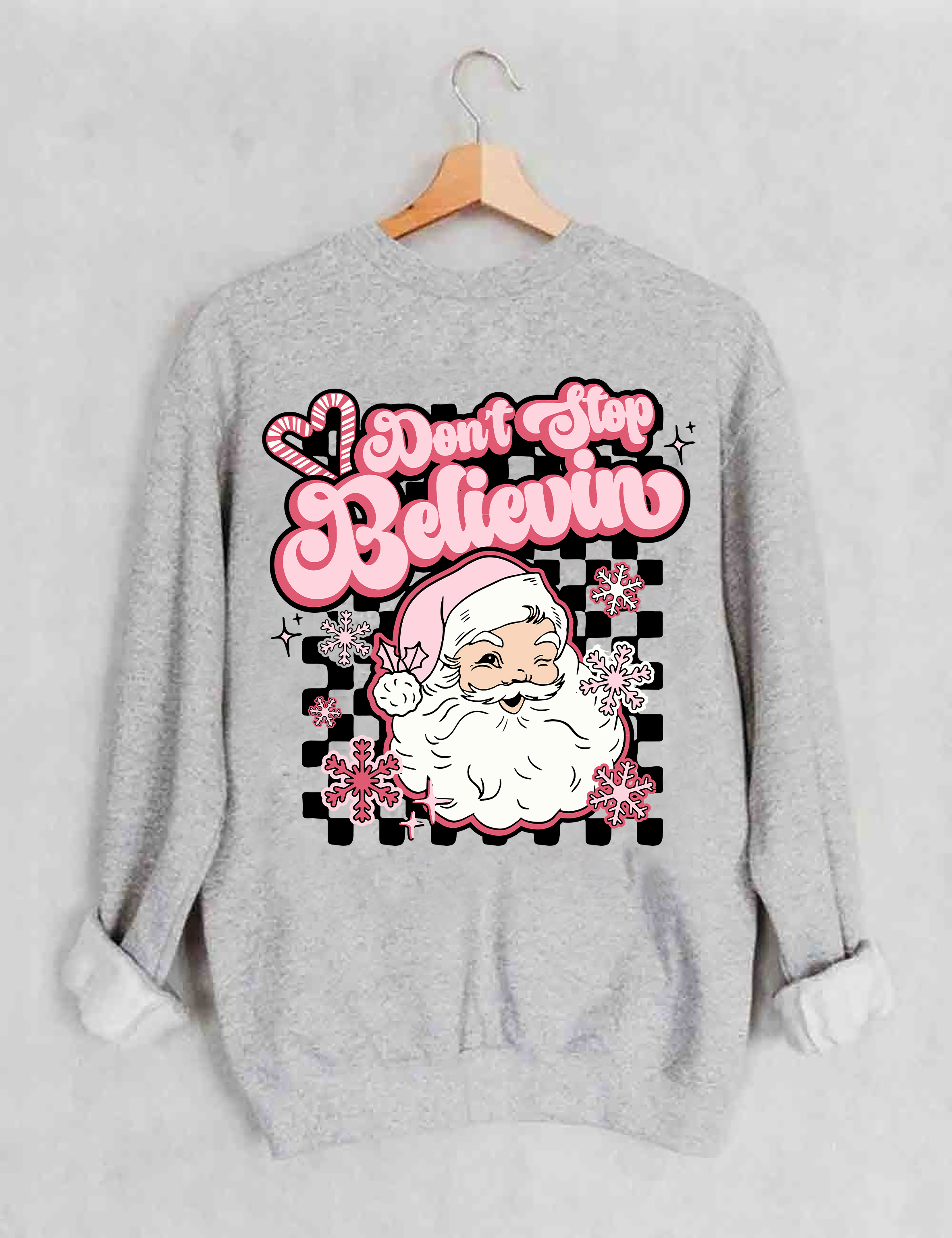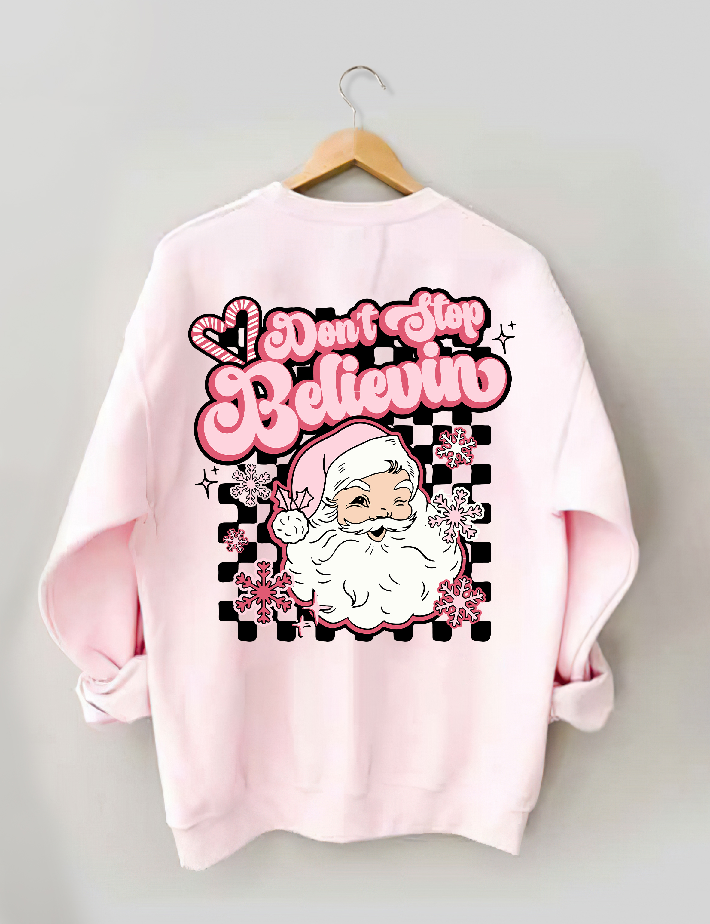Don't Stop Believin Pink Santa Sweatshirt