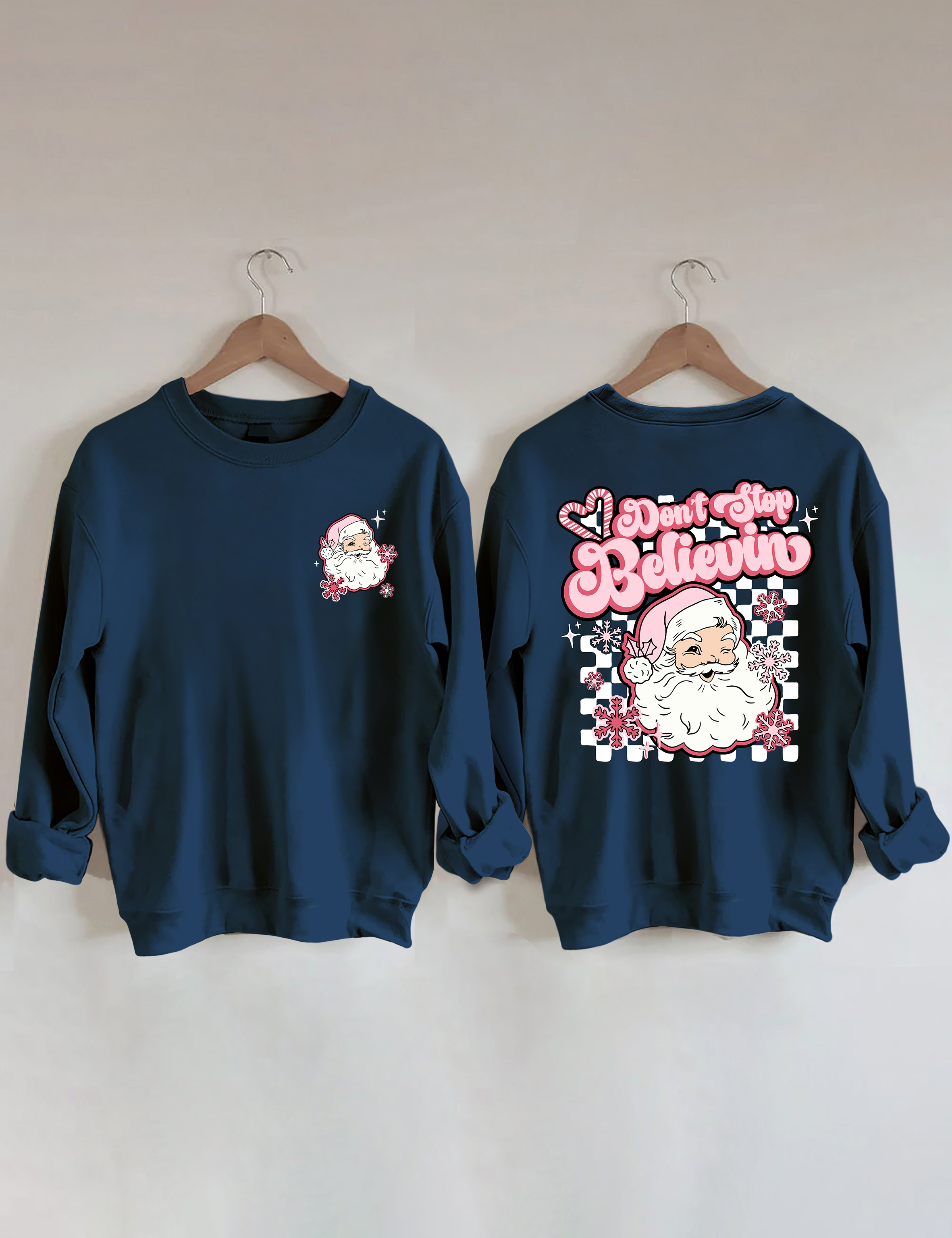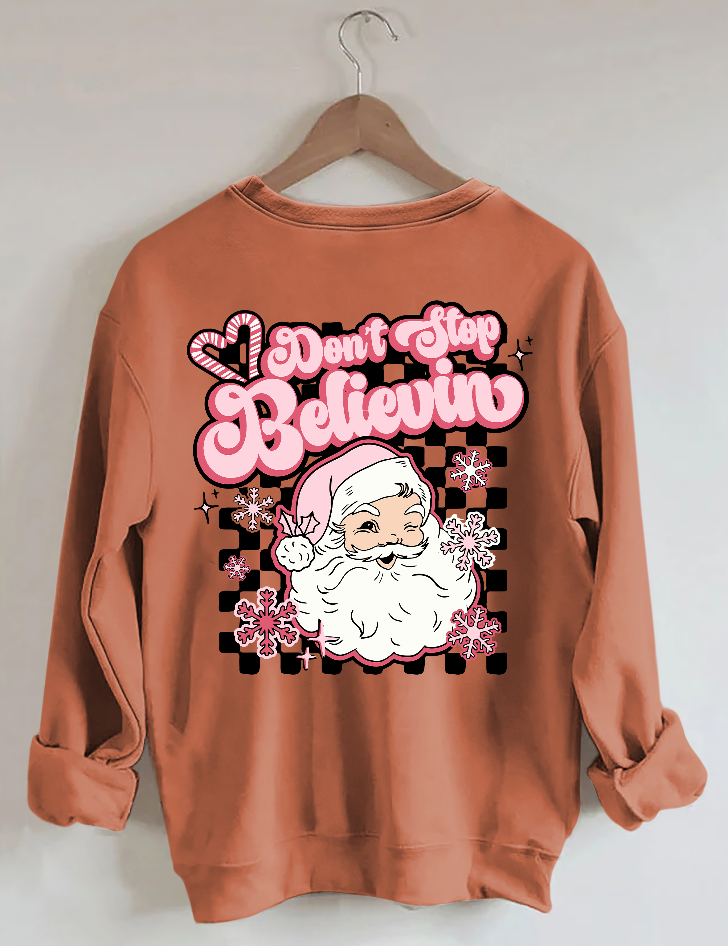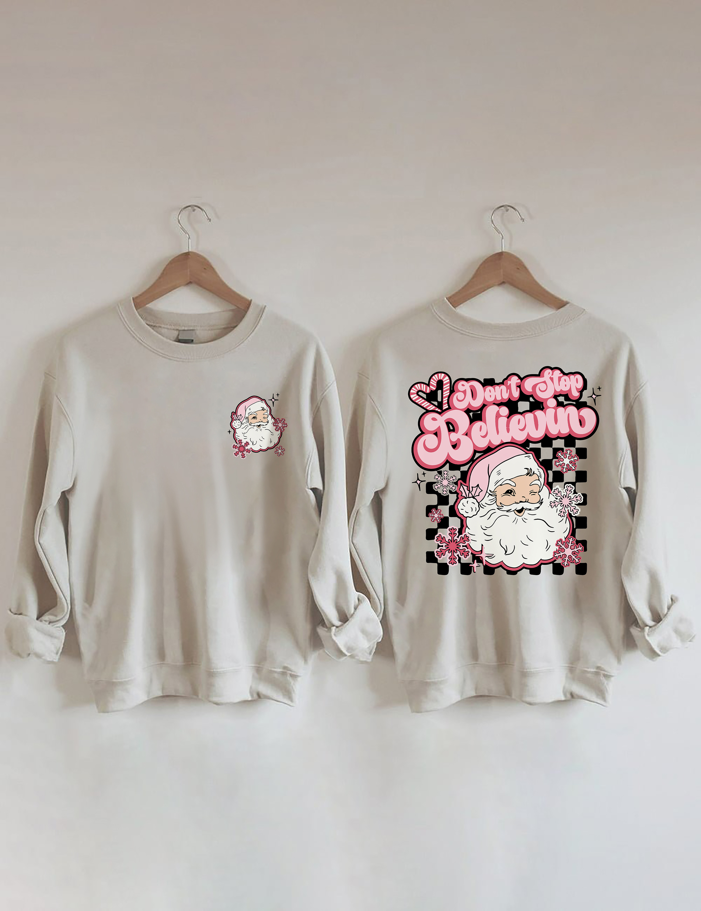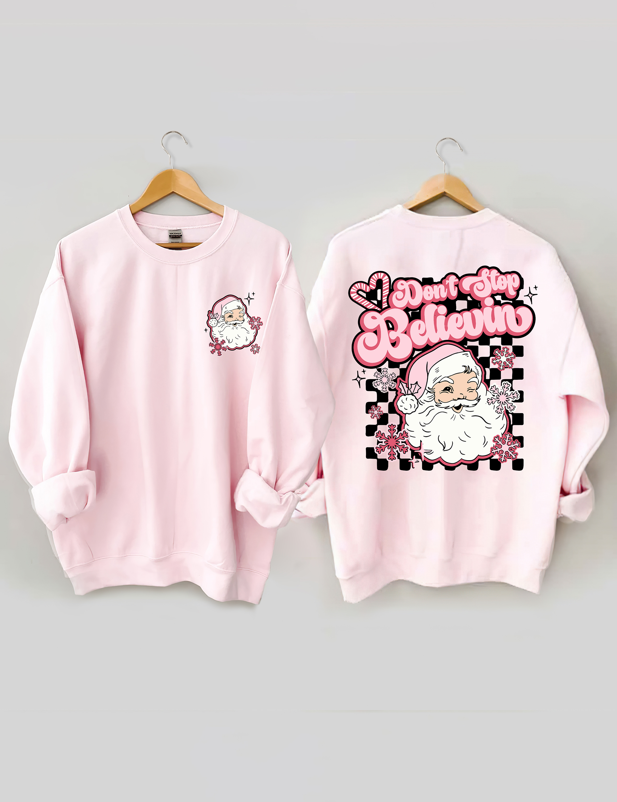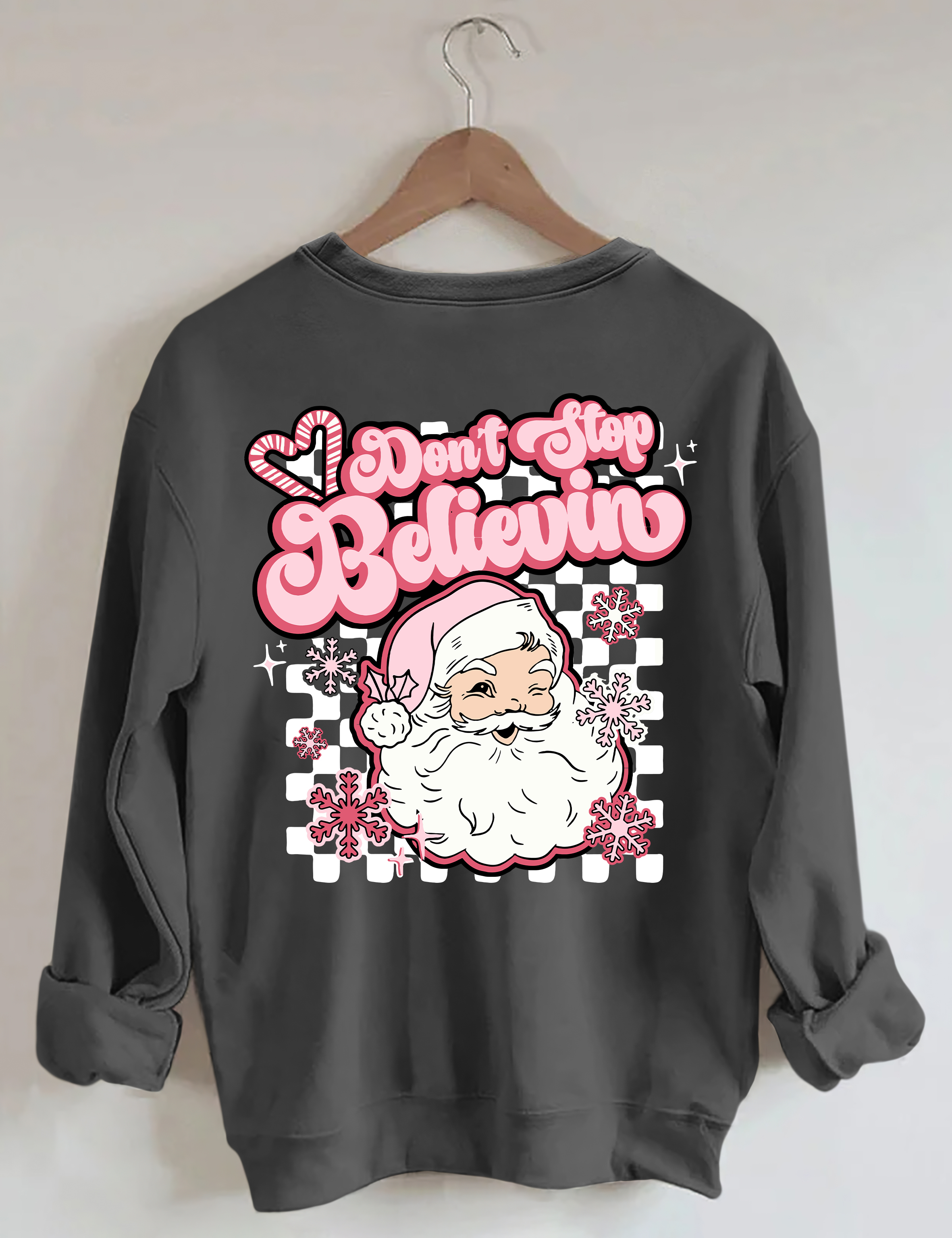 Don't Stop Believin Pink Santa Sweatshirt