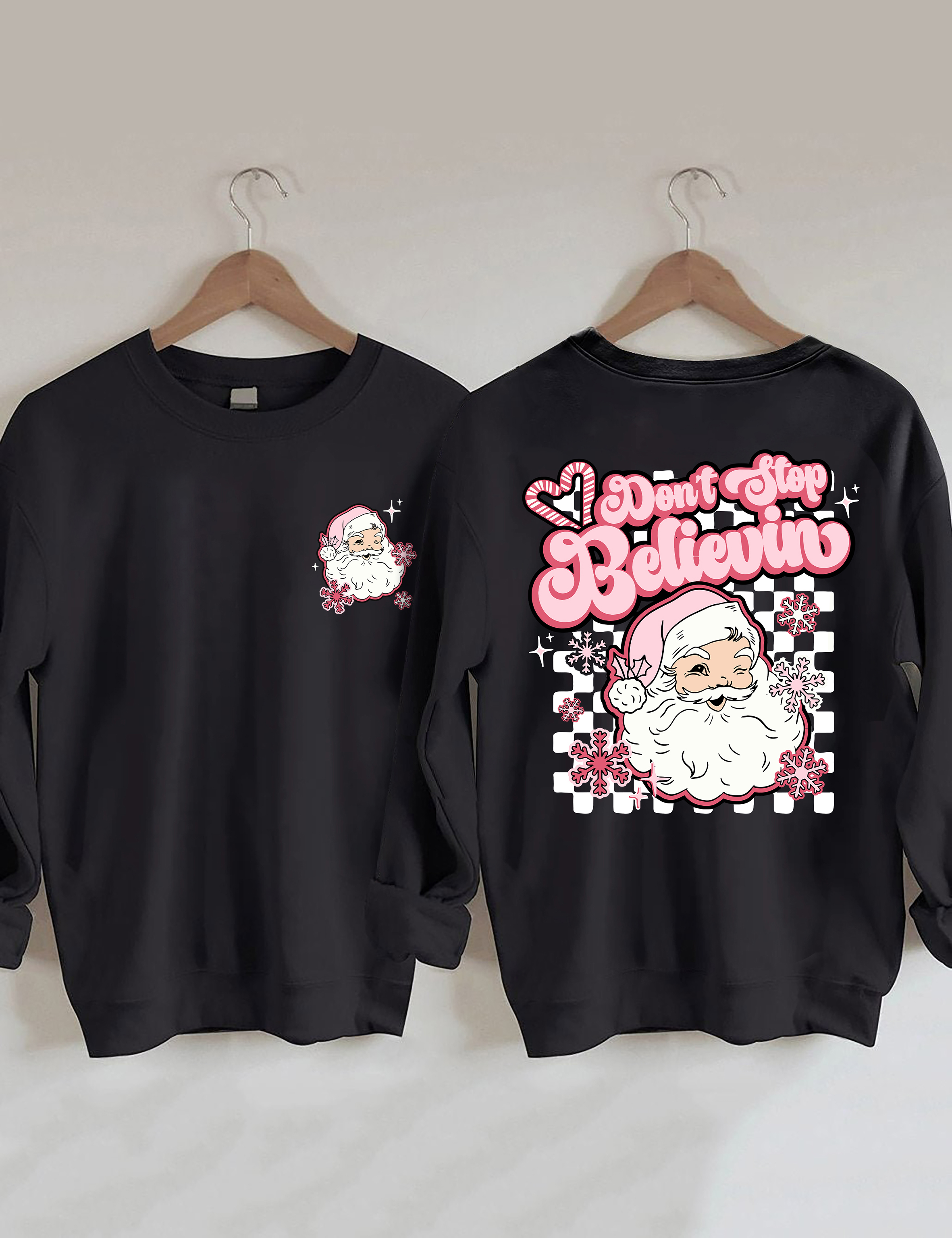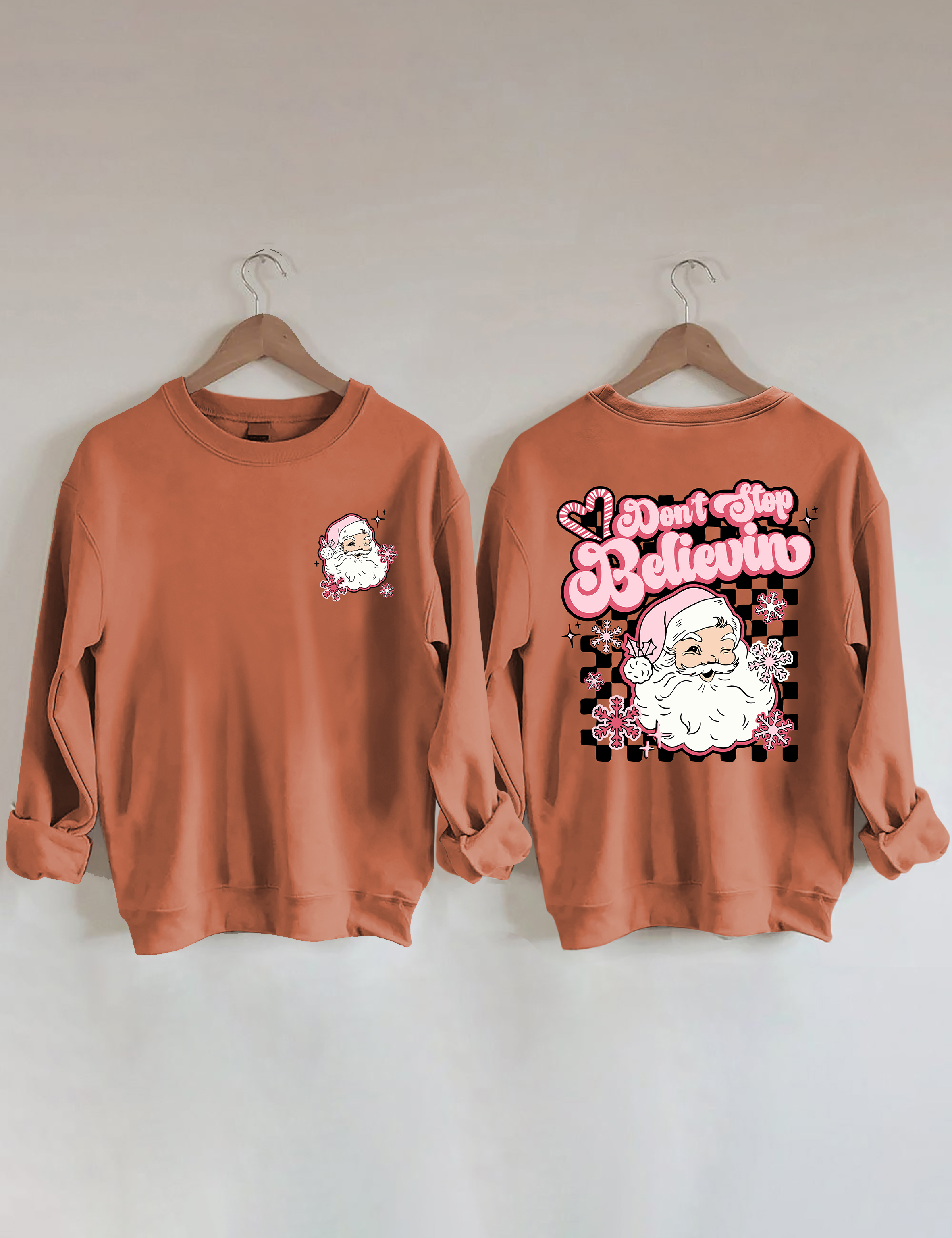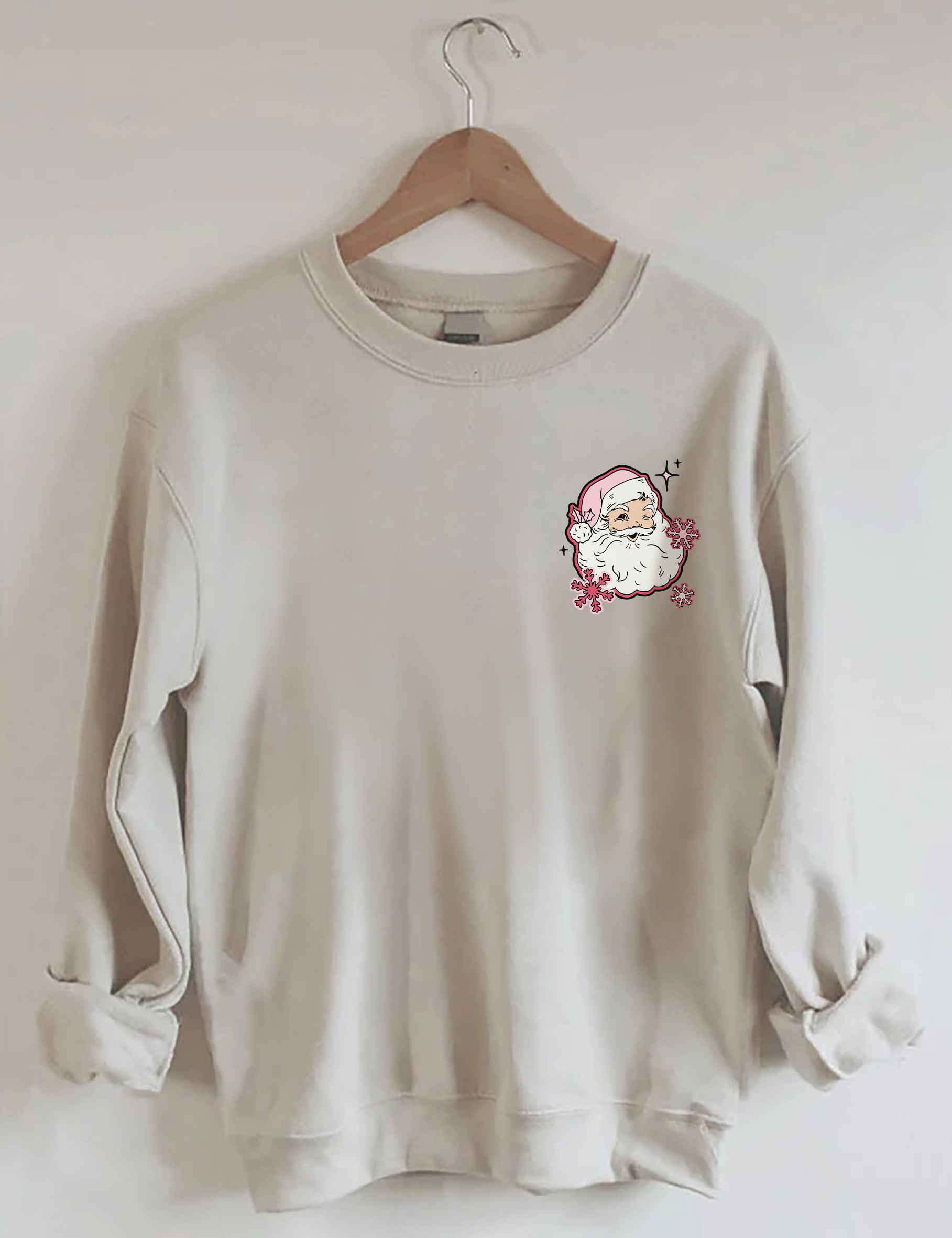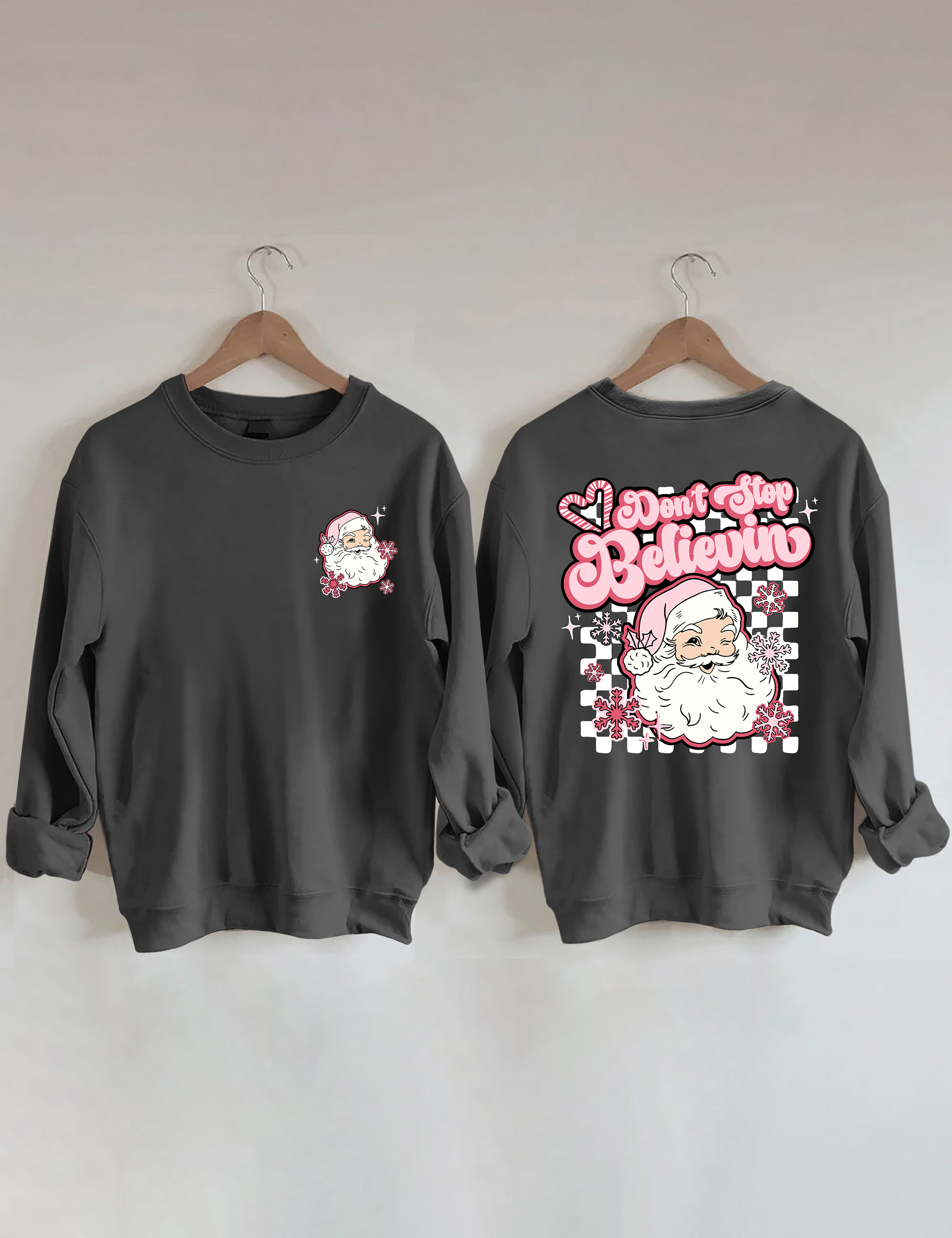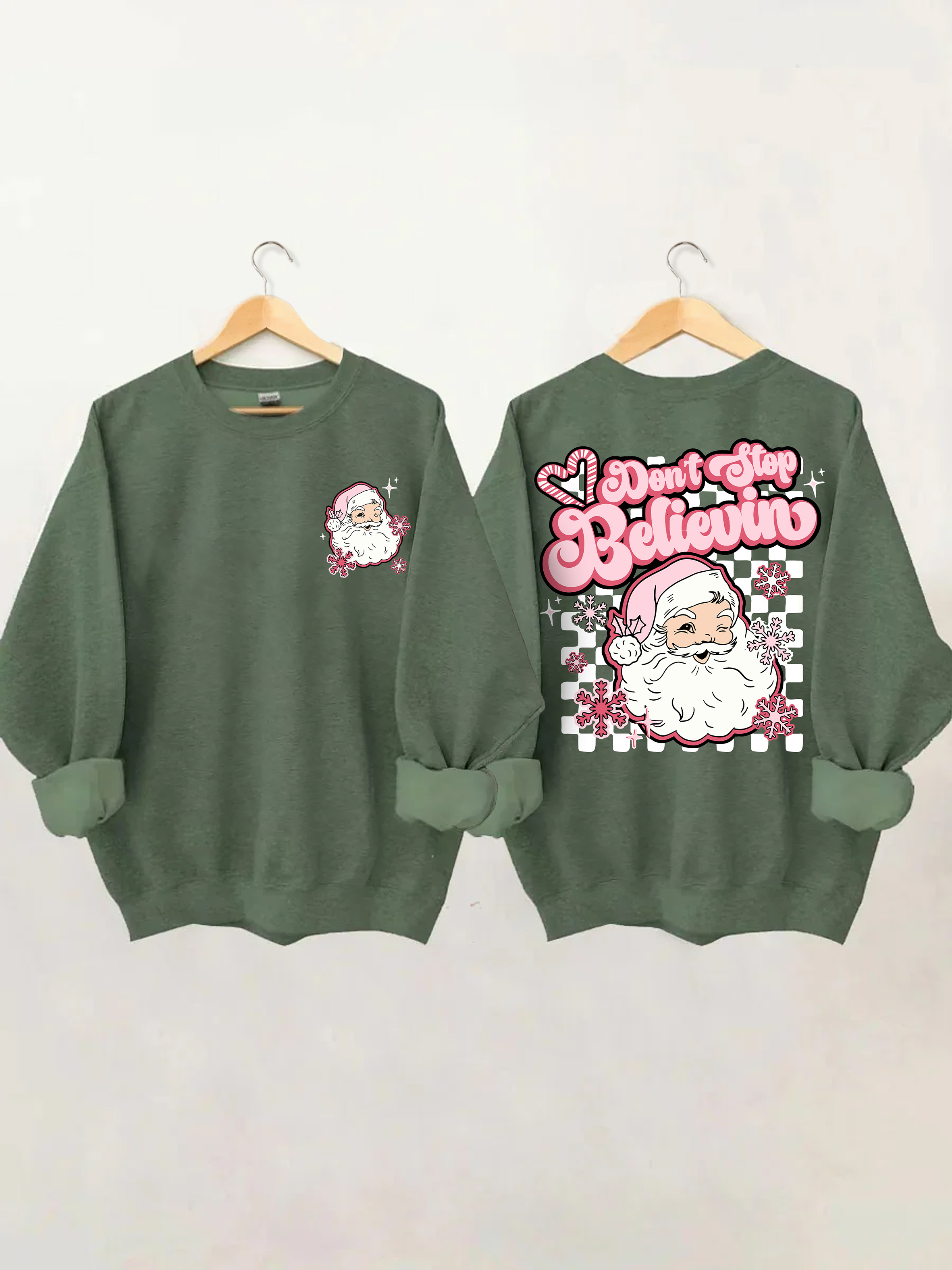 Don't Stop Believin Pink Santa Sweatshirt