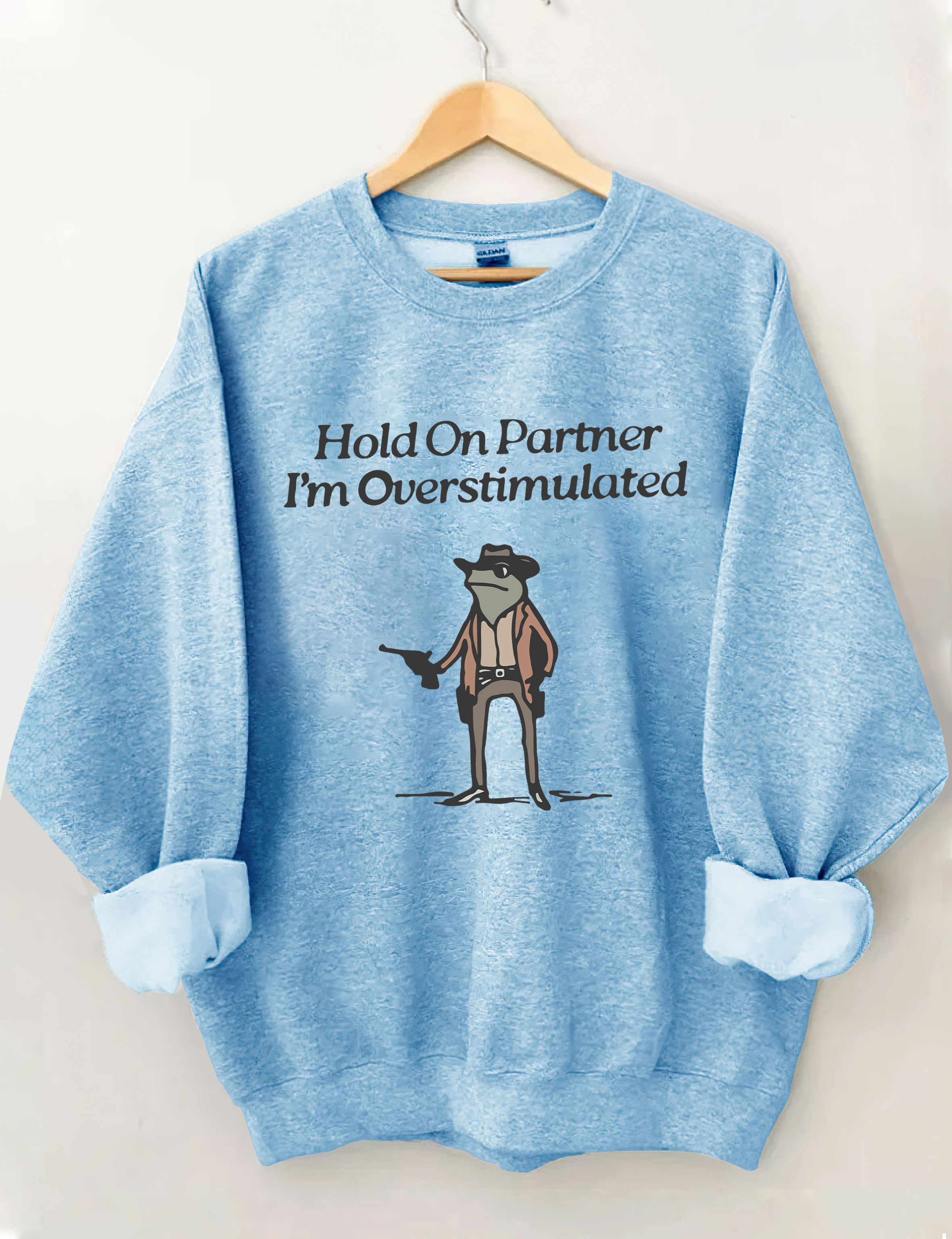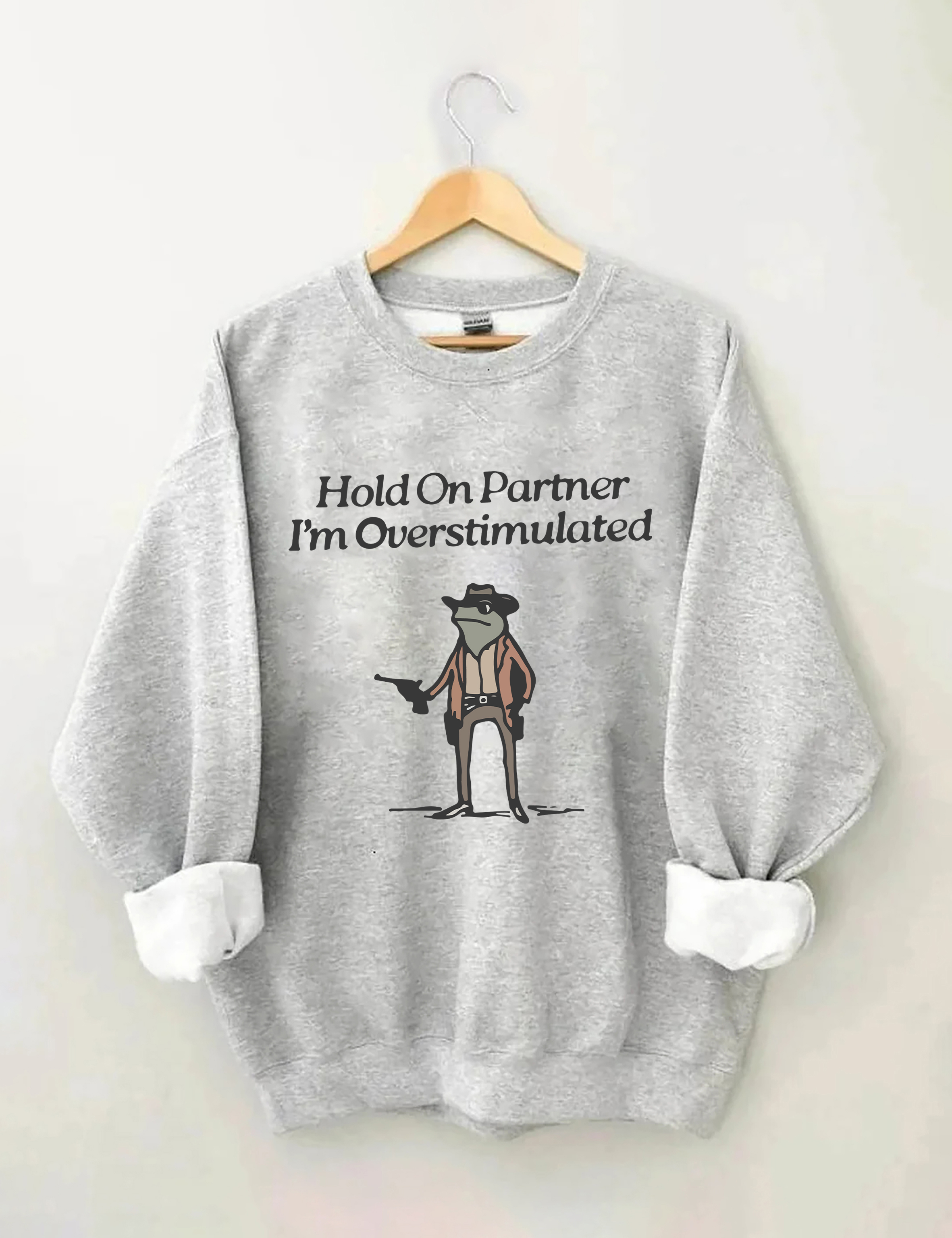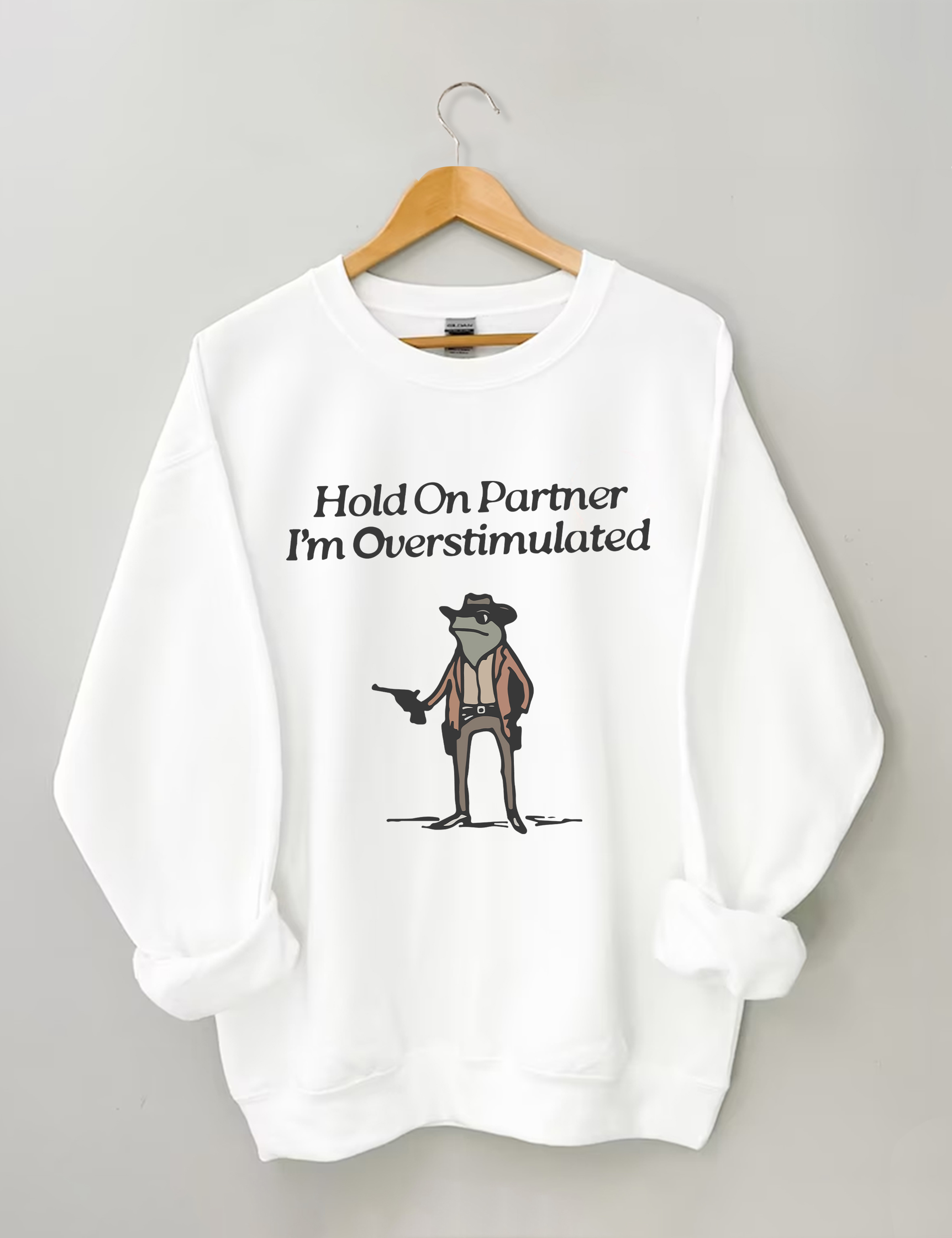 Hold On Partner I'm Overstimulated Sweatshirt
