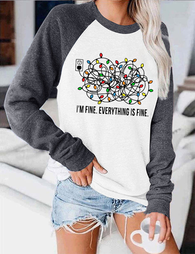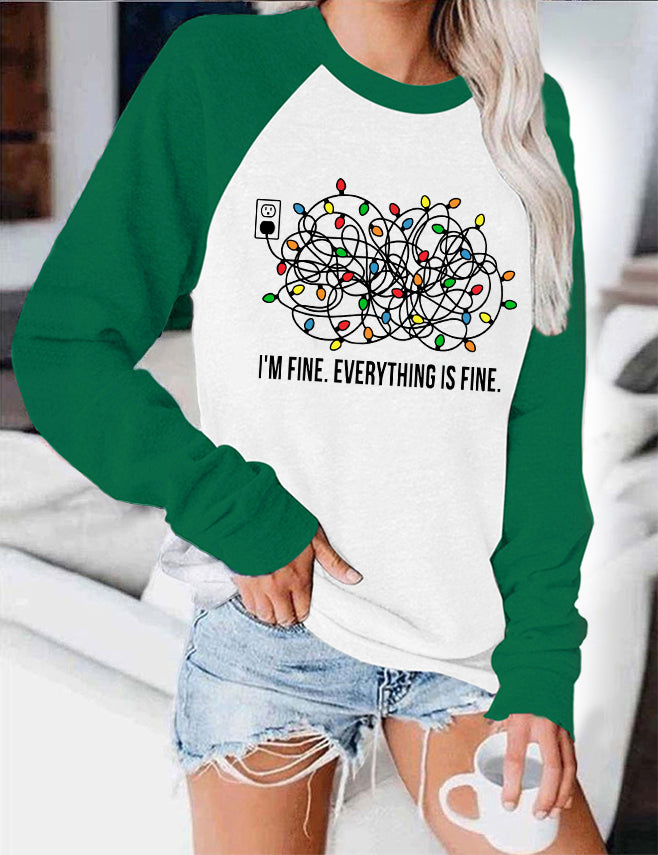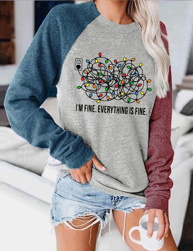 I'm Fine Everything is Fine Christmas Color Block Blouse