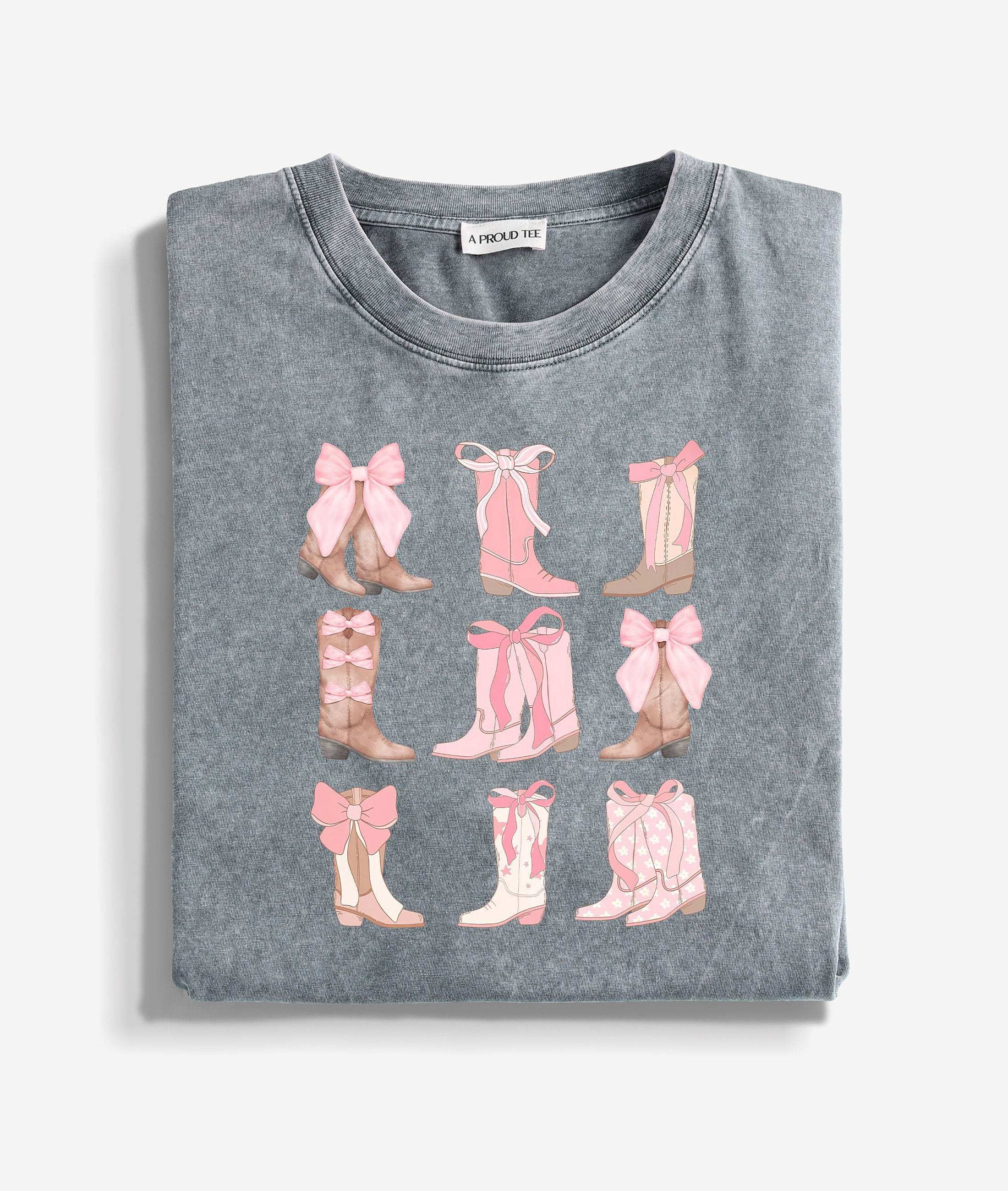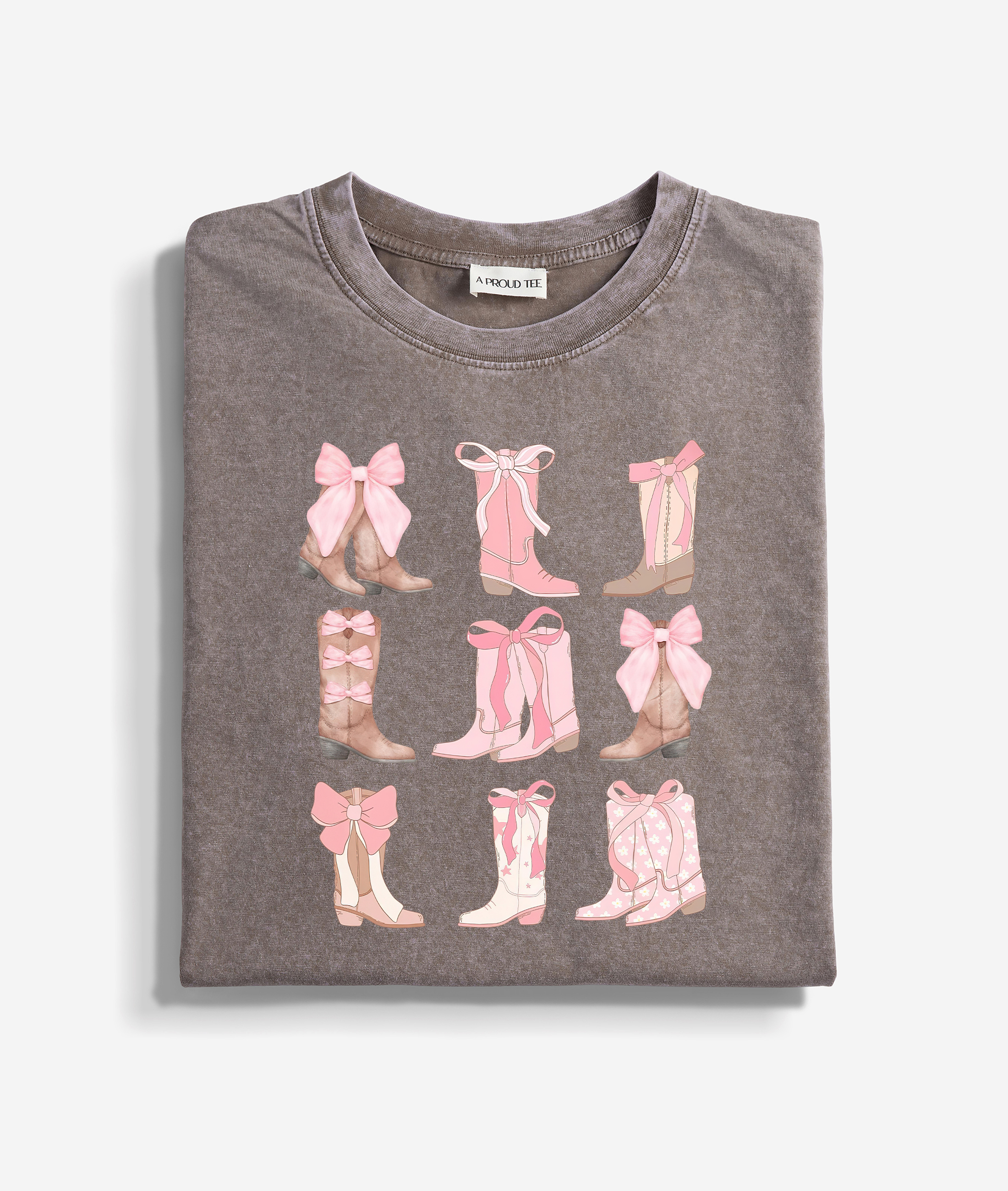 Pink Bow Cowgirl Boots Washed T-shirt